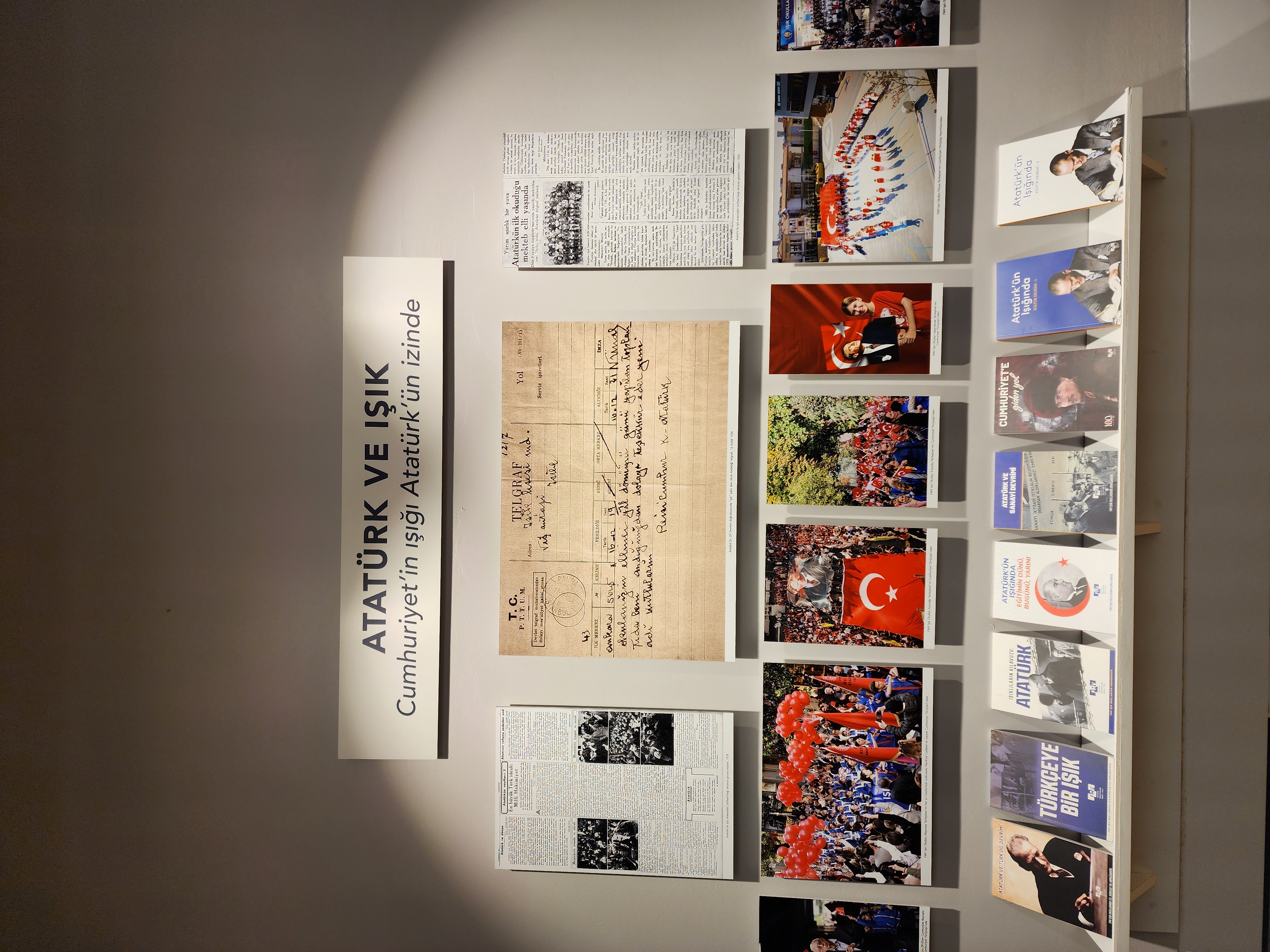 Sergide, Cumhuriyet’in ilk yıllarında kullanılan okul sıraları, ders araç gereçleri ve eğitim materyalleri ile günümüzün çağdaş sınıf donanımları yan yana sergilenerek, eğitim anlayışındaki dönüşüm somut biçimde gözler önüne seriliyor. Erken dönem öğrenci defterleri, karneler, sınıf fotoğrafları, öğretmen ve öğrenci portreleri ile dijital eğitim araçlarının birlikte sunulduğu bu seçki, geçmişle bugünü buluşturan güçlü bir eğitim hafızası oluşturuyor.