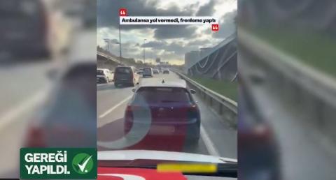 Sürücüye, 2918 sayılı Karayolları Trafik Kanunu uyarınca idari para cezası uygulandı. Mevcut düzenlemeye göre ambulansa yol vermemenin cezası 993 lira olarak uygulanıyor.